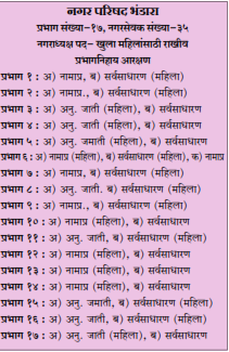 भंडारा जिल्ह्यातील ४ नगरपरिषदांचे प्रभागनिहाय आरक्षण जाहीर
